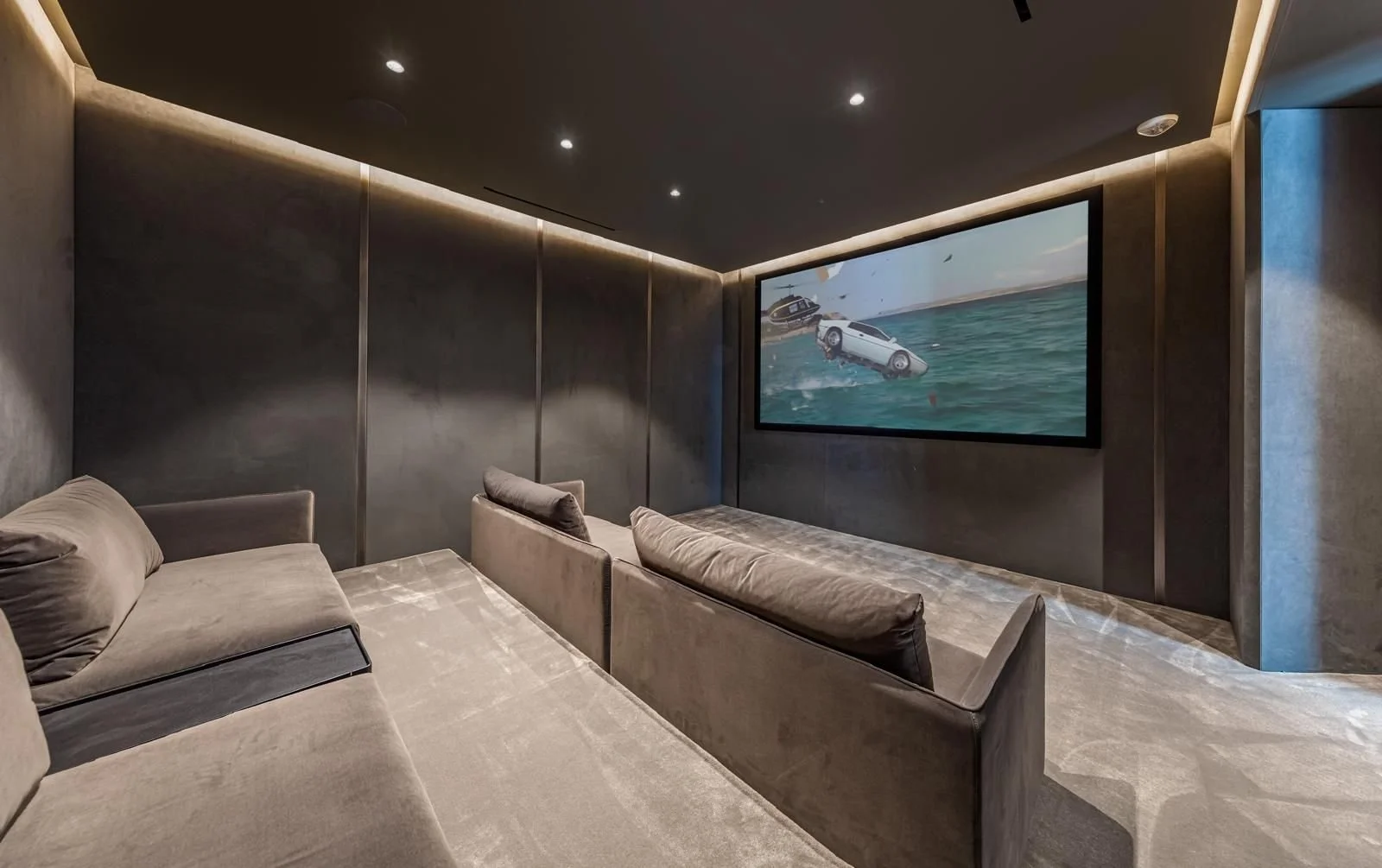 6,100 sq ft, 5 bedrooms, 7.5 bathrooms, with a gym and a theater.